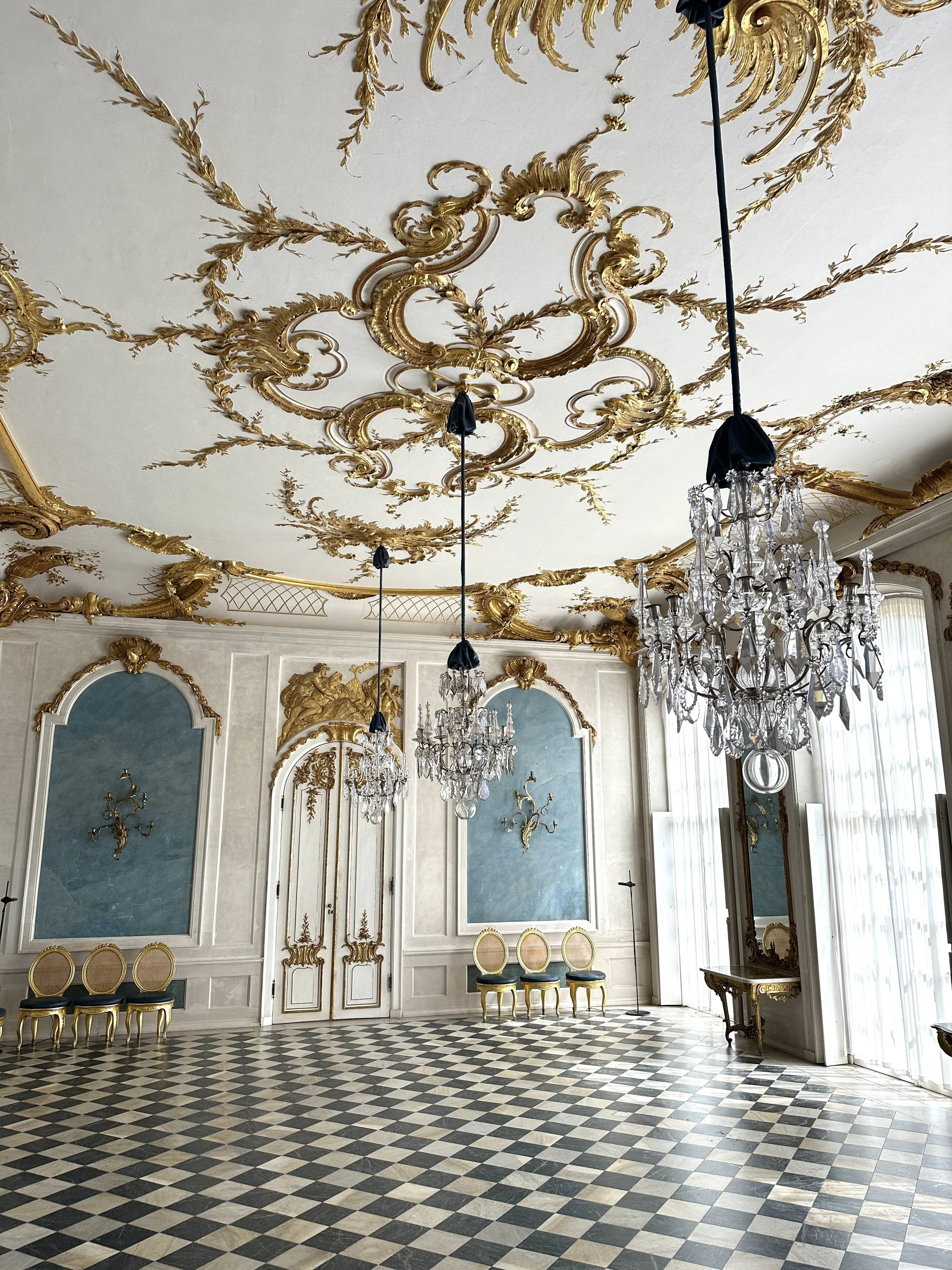 We could put 2 and 2 together, and they sum to gay. From reading Wikipedia later, Sanssouci was well known as a men-only summer retreat, and the king had many regular visitors who stayed the summer with him. This might explain the rather extravagant design of the many rooms in the main palace: