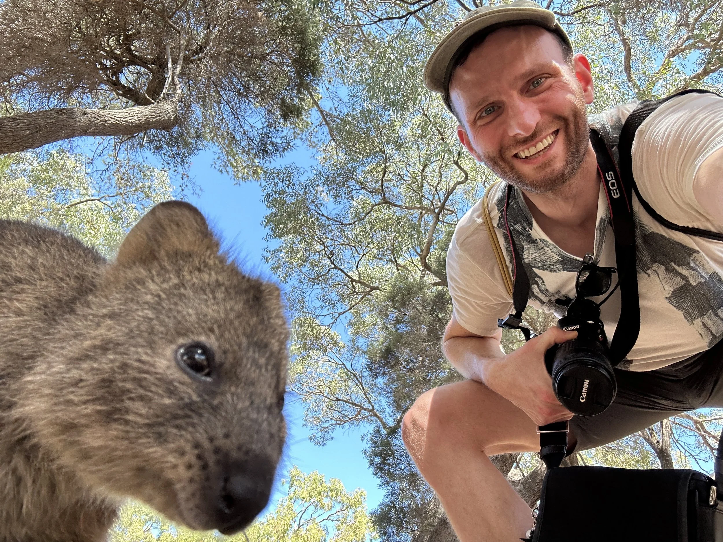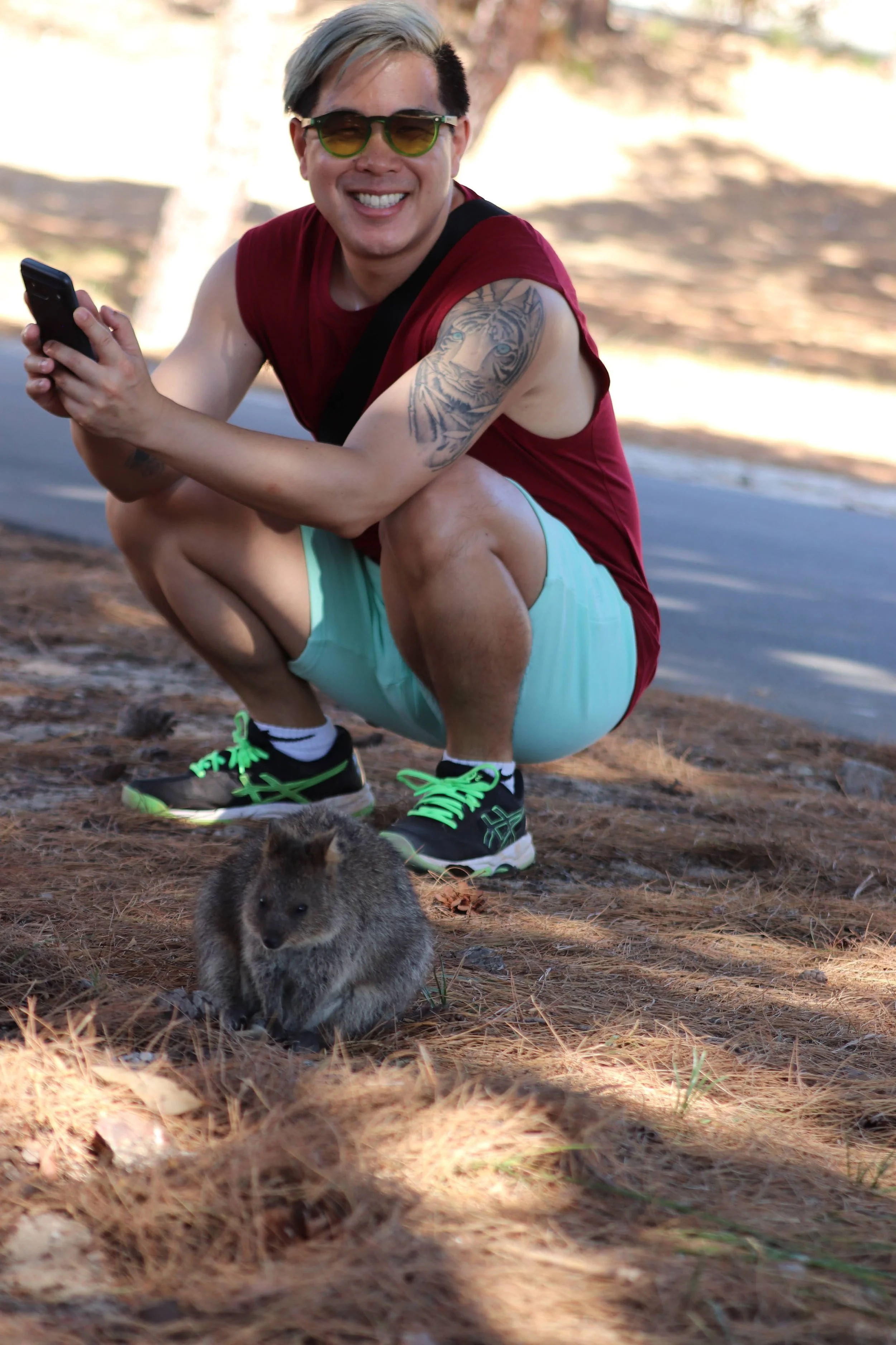 But after taking a bunch of photos with this quokka, I was finally able to get the iconic smiling selfie with it: