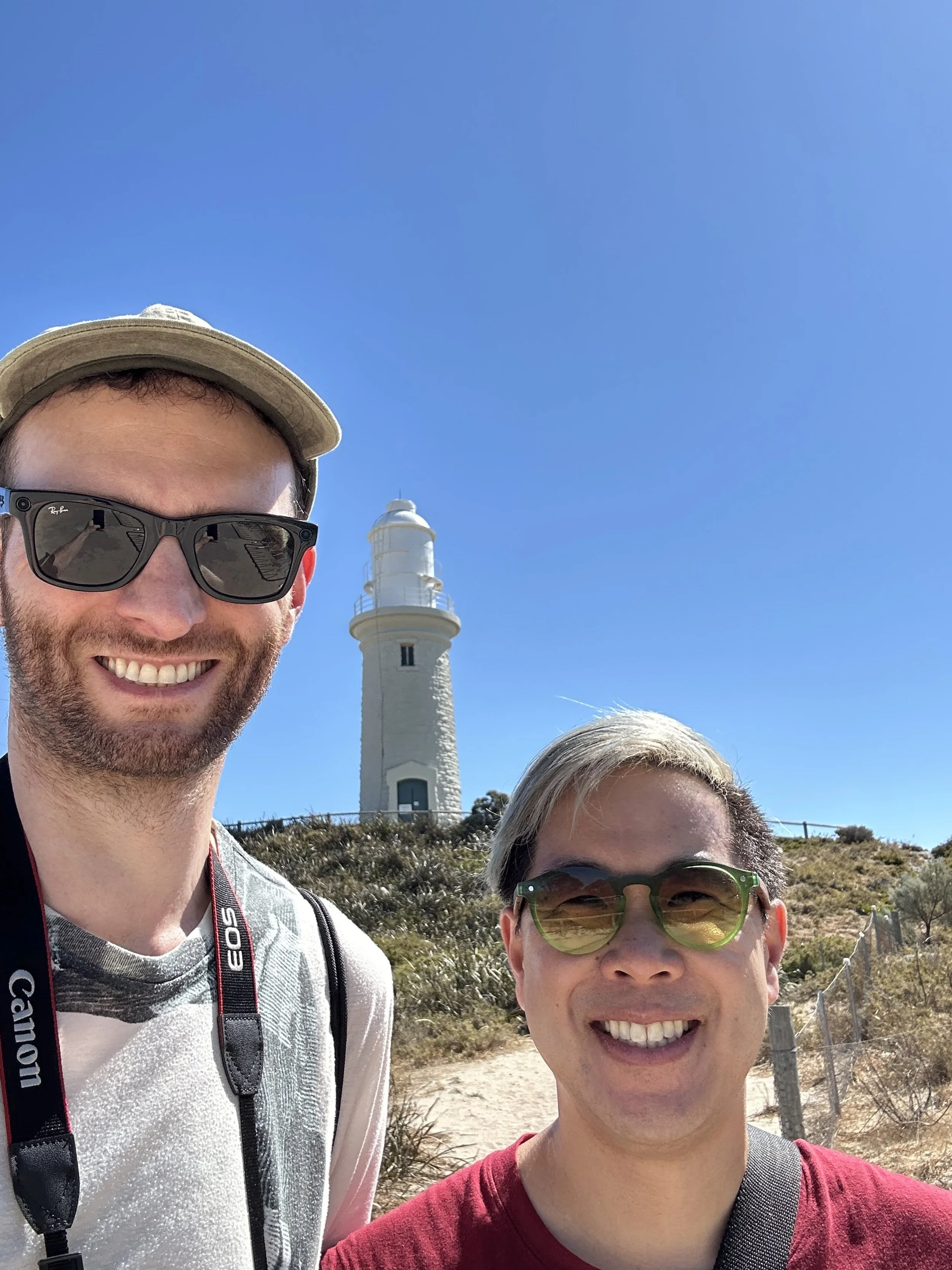 After landing at the Rottnest Island dock, we made our way inland a bit and just meandered until we found some signs to a lighthouse. Because we had already booked our return ferry to Fremantle, we had just over two hours on the island before we needed to leave, so we didn’t have too much time to explore the entirety of the island. Soon after walking away from the busy port area, we saw our first quokkas, but didn’t have too much luck getting a good photo of and with them: