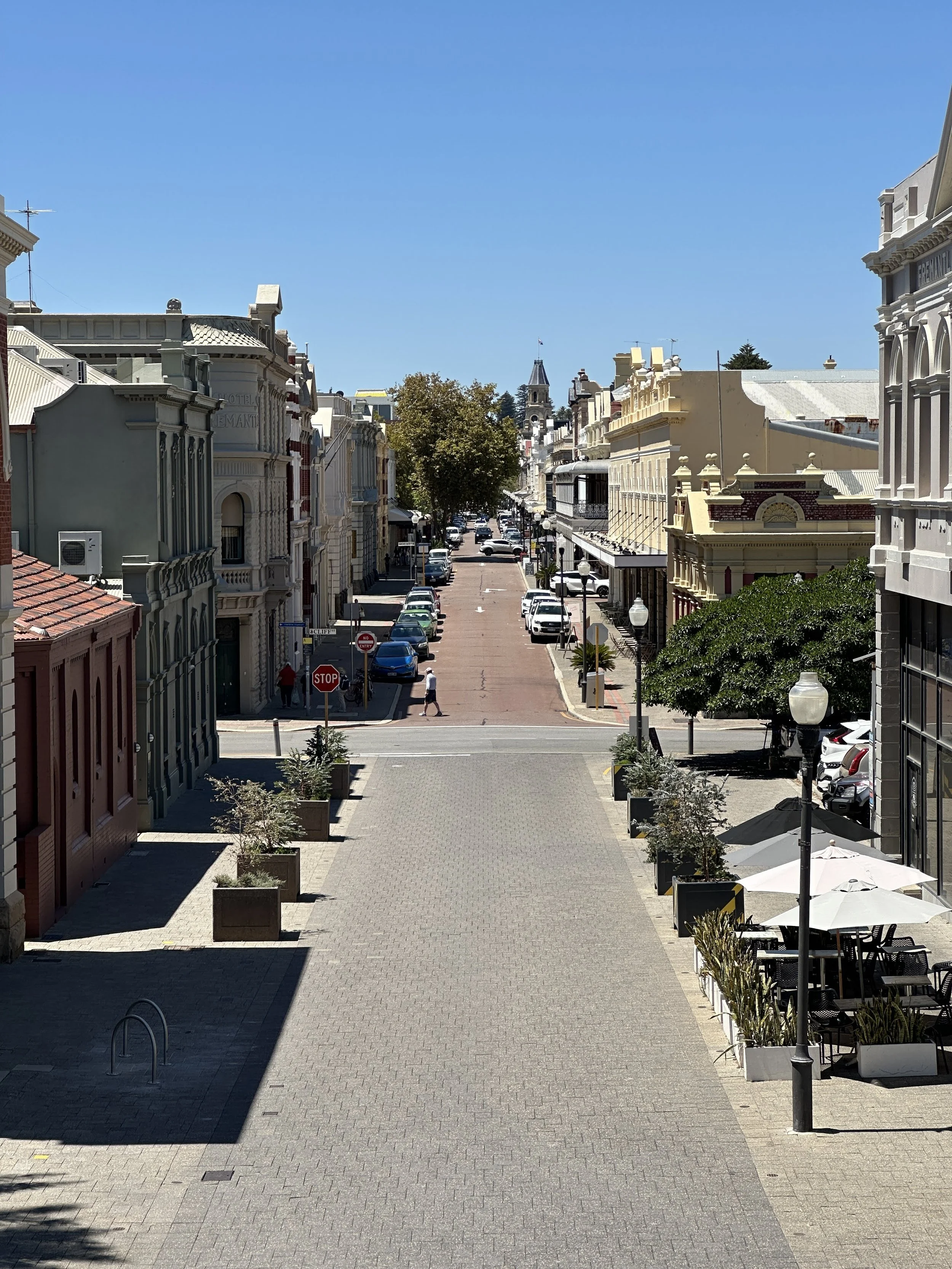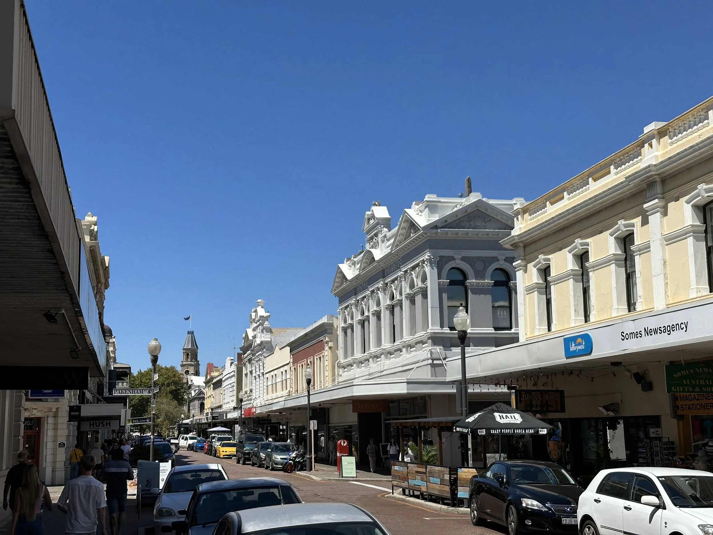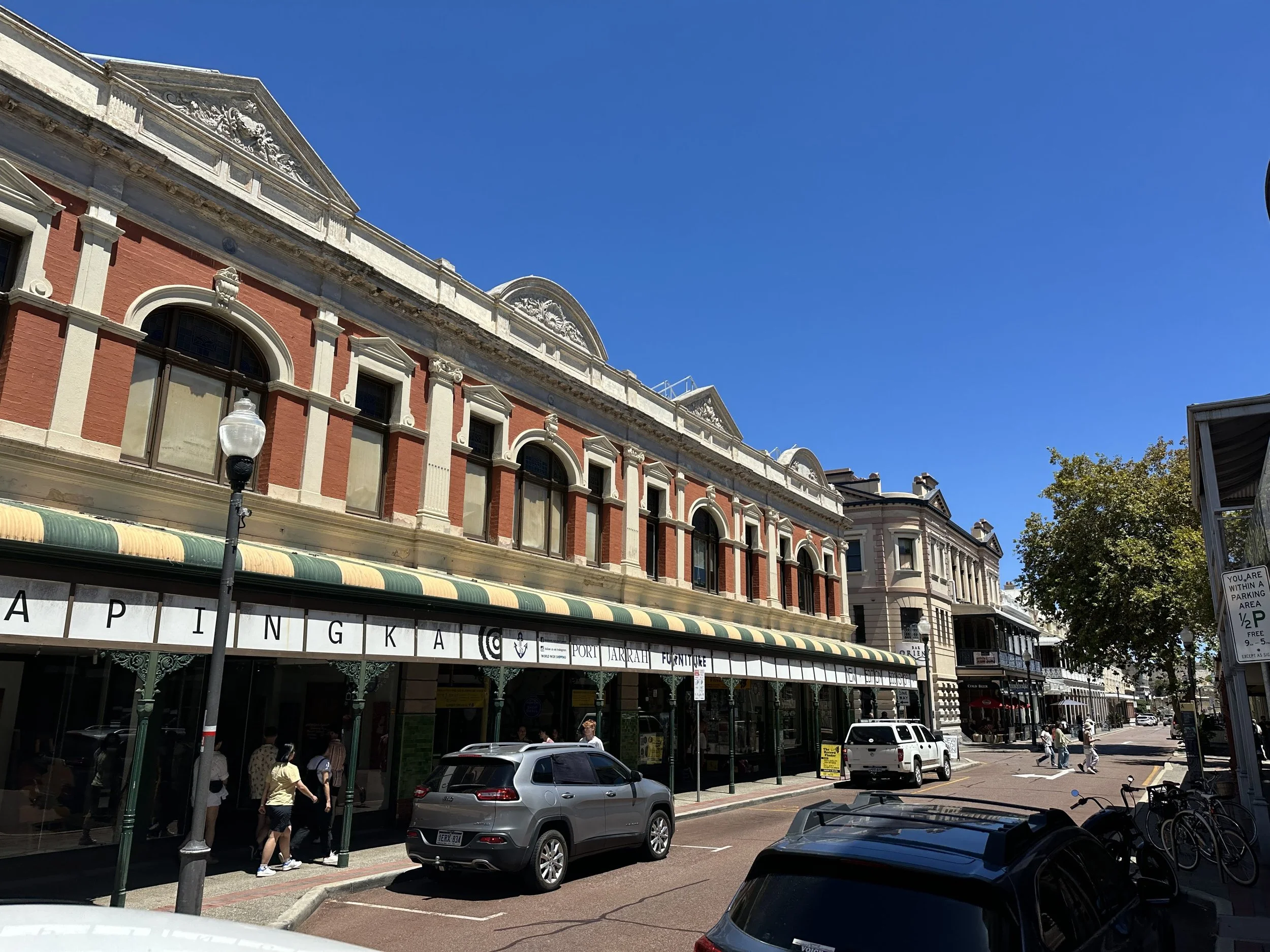 After disembarking the return ferry, we took a short walk to the center of Fremantle, which is known for its gold rush era buildings. It was also fascinating to see the juxtaposition of these older buildings abutting much newer looking structures: