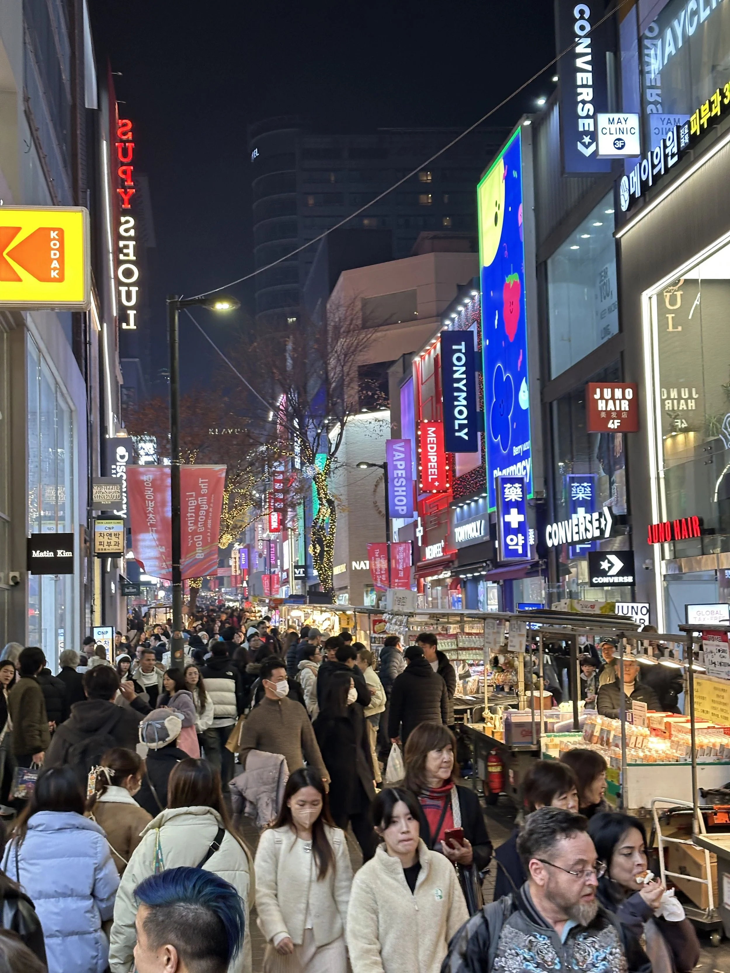 If we thought Lotte World was crowded, Myeongdong night market was even more so: