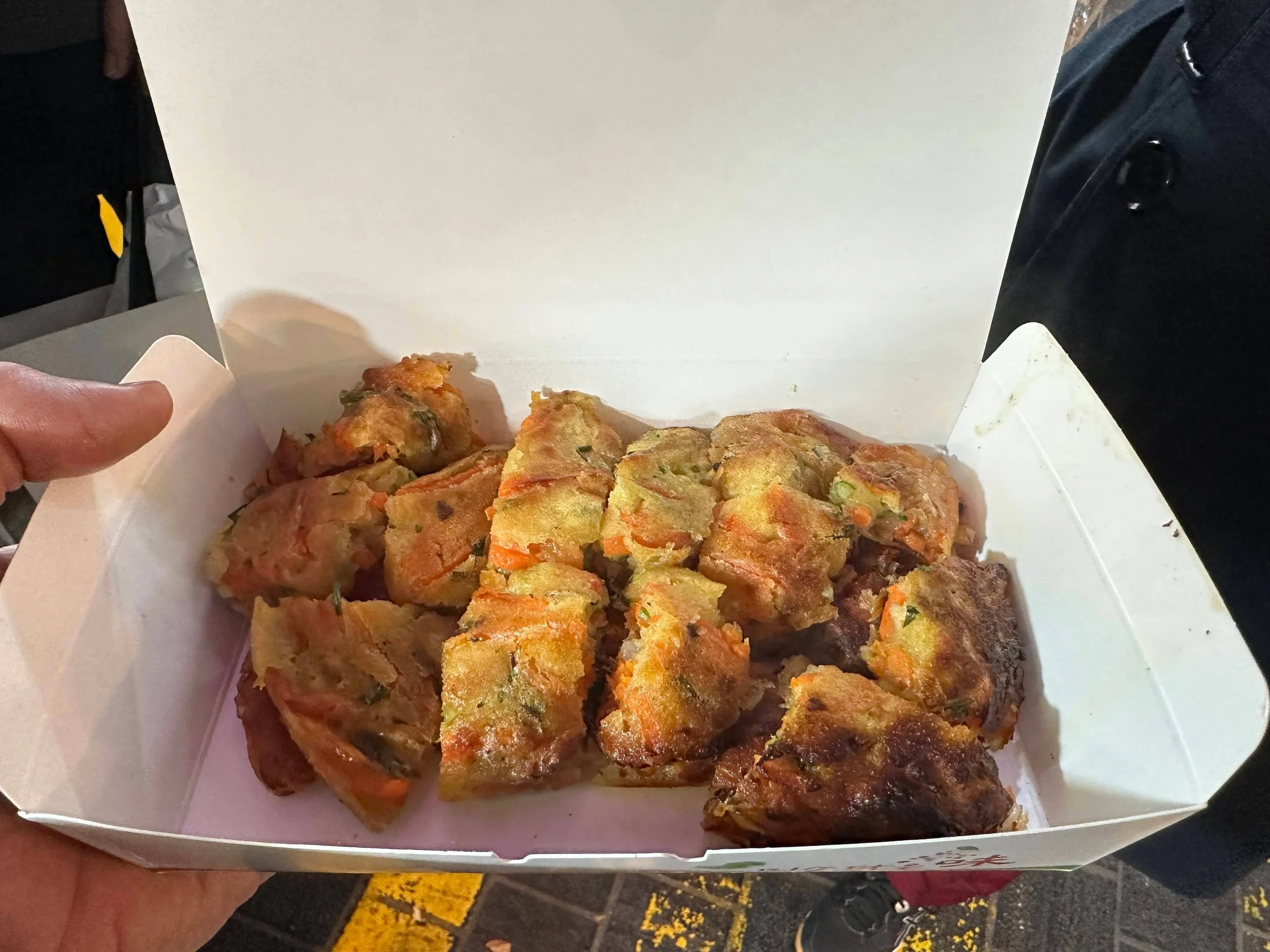 We devoured our selection quite quickly, but we forgot that there was a lack of trash bins, and that we should have returned our container back at the stall for them to get rid of. Instead, we kept walking around with an empty plastic container.