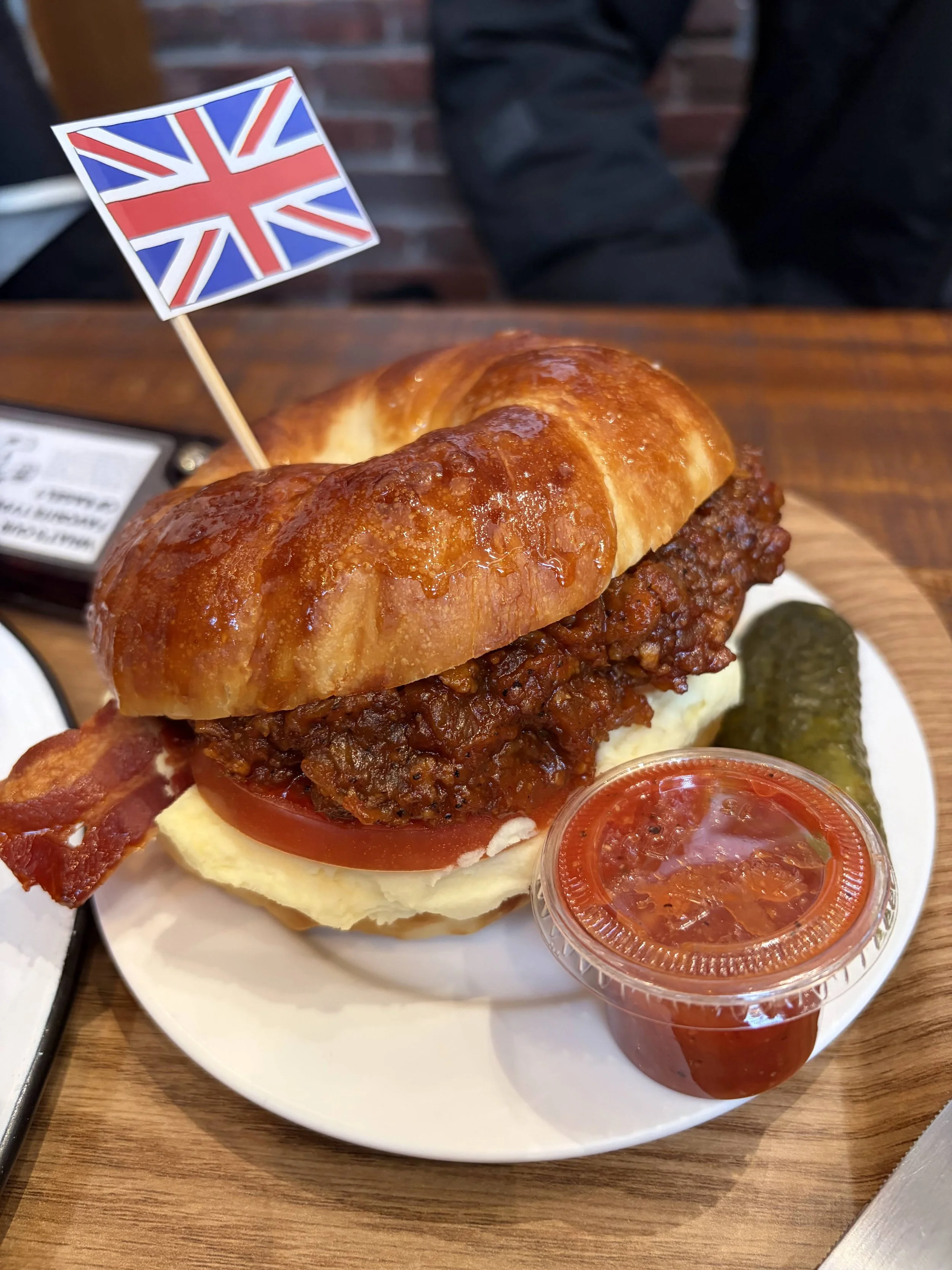 After Nick gave me a look that questioned my sanity, we took a bite and it was actually really good. The bacon part was similar to a sloppy joe, and it was on top of creamy mashed potato and a slice of tomato. I only wished it was warm, but other than that, still a good snack to get us through the rest of the day. I would say that we were disappointed that they didn’t warm up or toast any of the bagels for us.