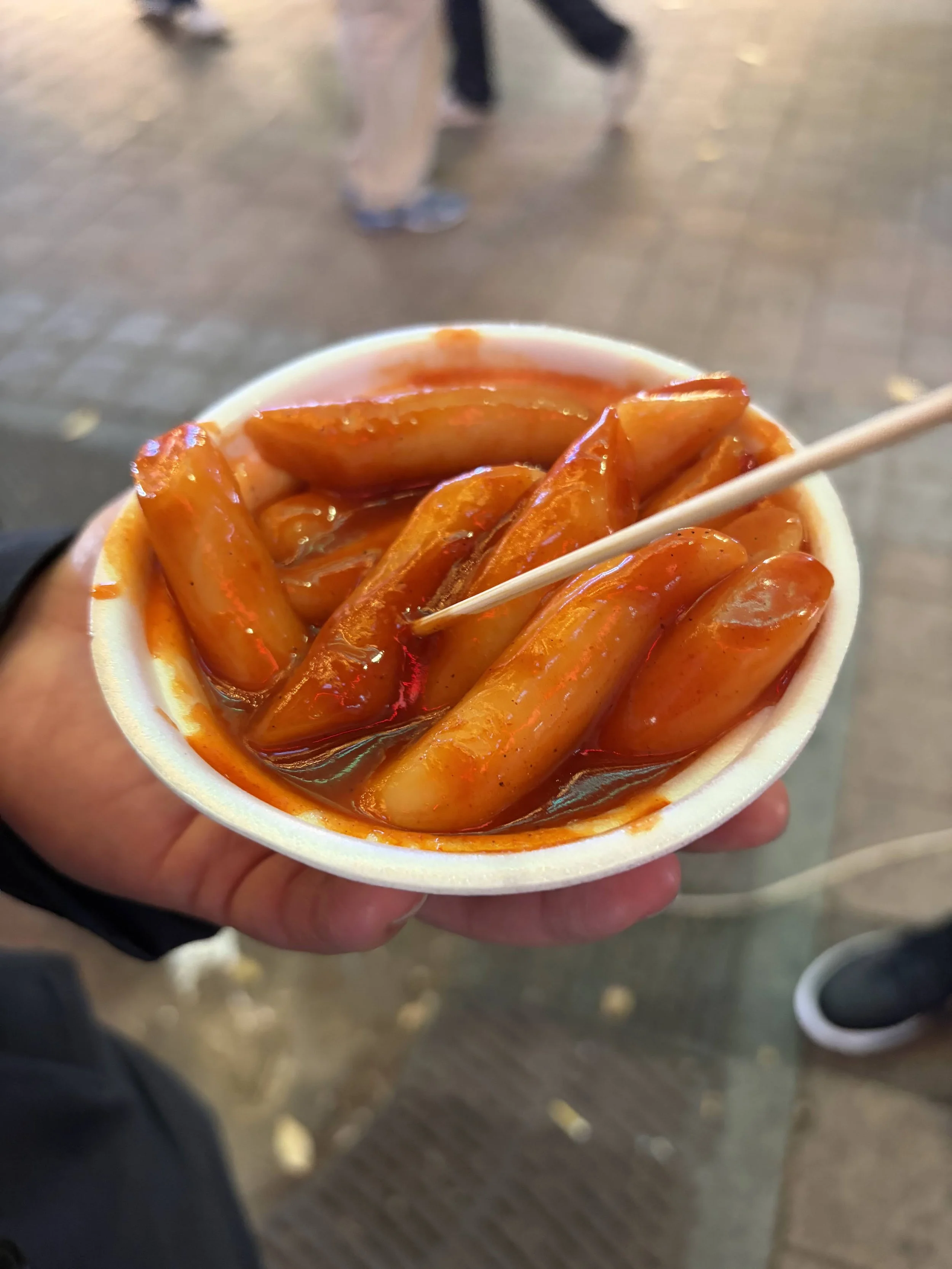 The next stall served tteokbokki, rice cakes simmered in a spicy sauce. On a cold evening, this was so comforting: