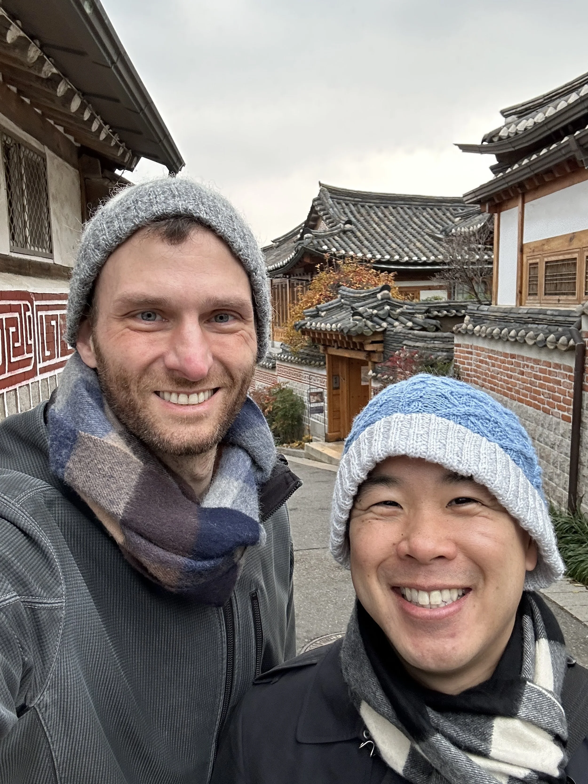 There were many groups of people dressed in hanbok taking photos, but they all looked extremely cold, so we were happy we didn’t opt for that. Also, I don’t think they’d have any hanbok in Nick’s size…