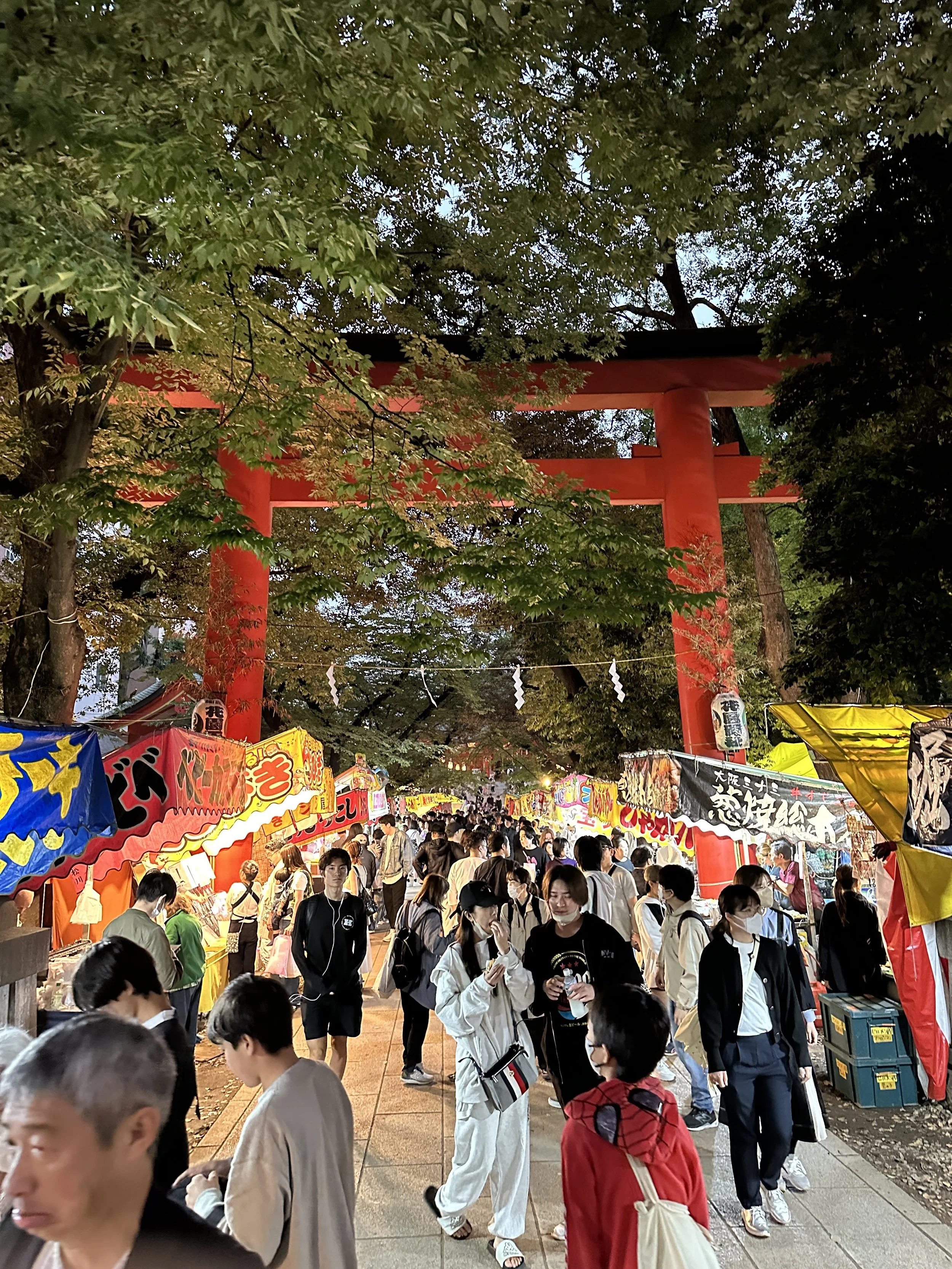 Around the corner is Hanazono Shrine, so we headed over there and were surprised to see another night market there. It was sort of fascinating to see a 17th-century shrine surrounded by various food and craft vendors, all under a massive Torii gate: