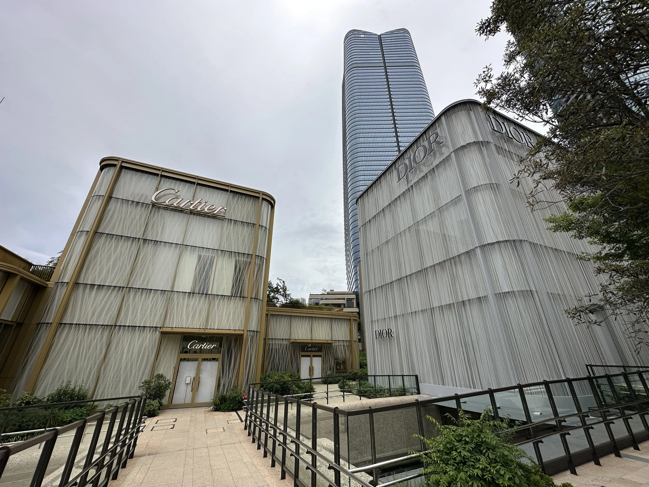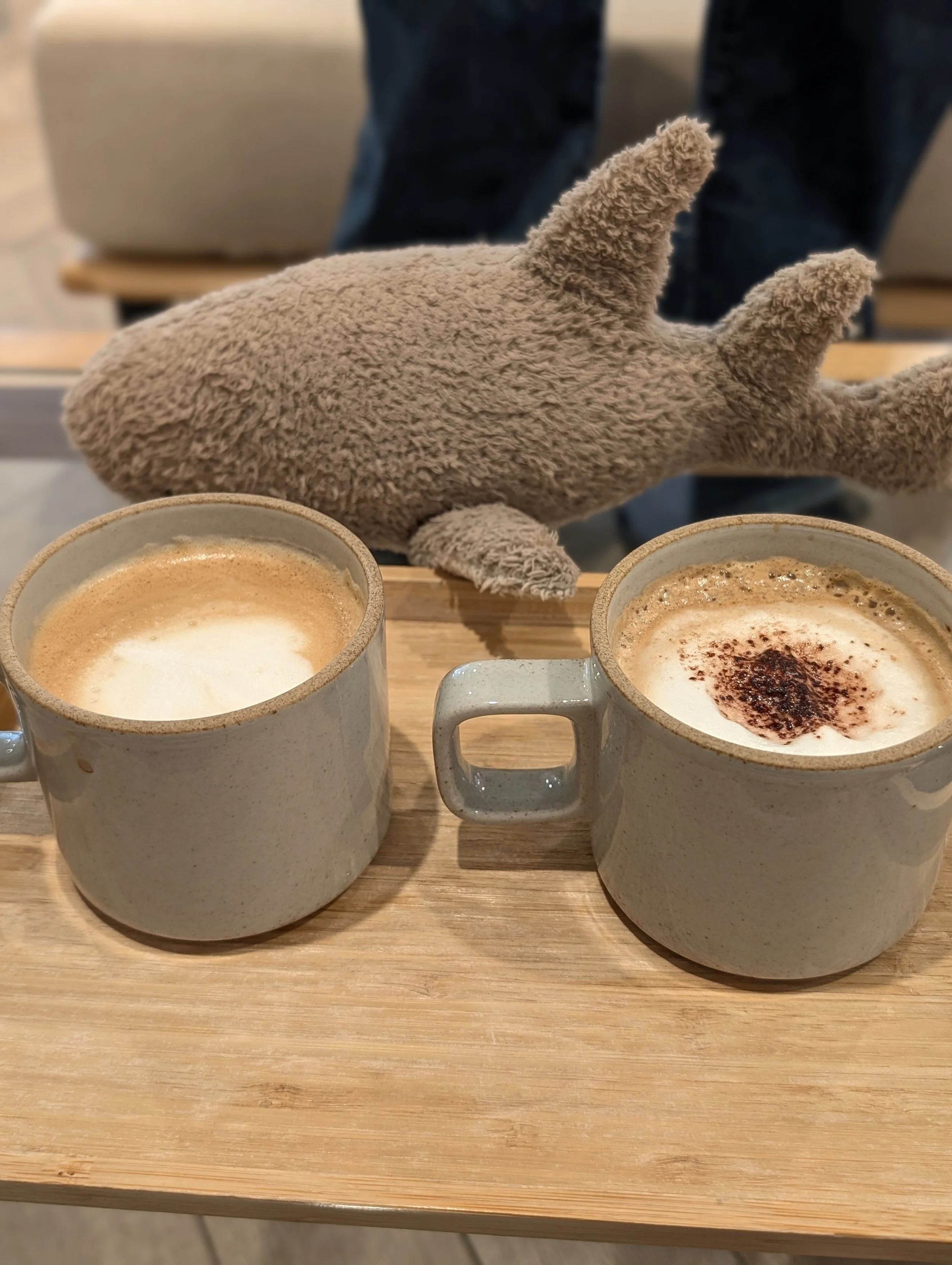 The next morning, after having breakfast at the hotel, we headed on the train to Azabudai Hills, a relatively new area featuring three skyscrapers. Inside one of them is the new location of the TeamLab Borderless exhibit. It used to be in Odaiba, which we visited a few years ago, so when I read that it moved with some new exhibits inside, I wanted to see what it was like. We got to the area early, so we looked around for some coffee and discovered this rather sleek coffee shop (Ogawa Coffee Laboratory):