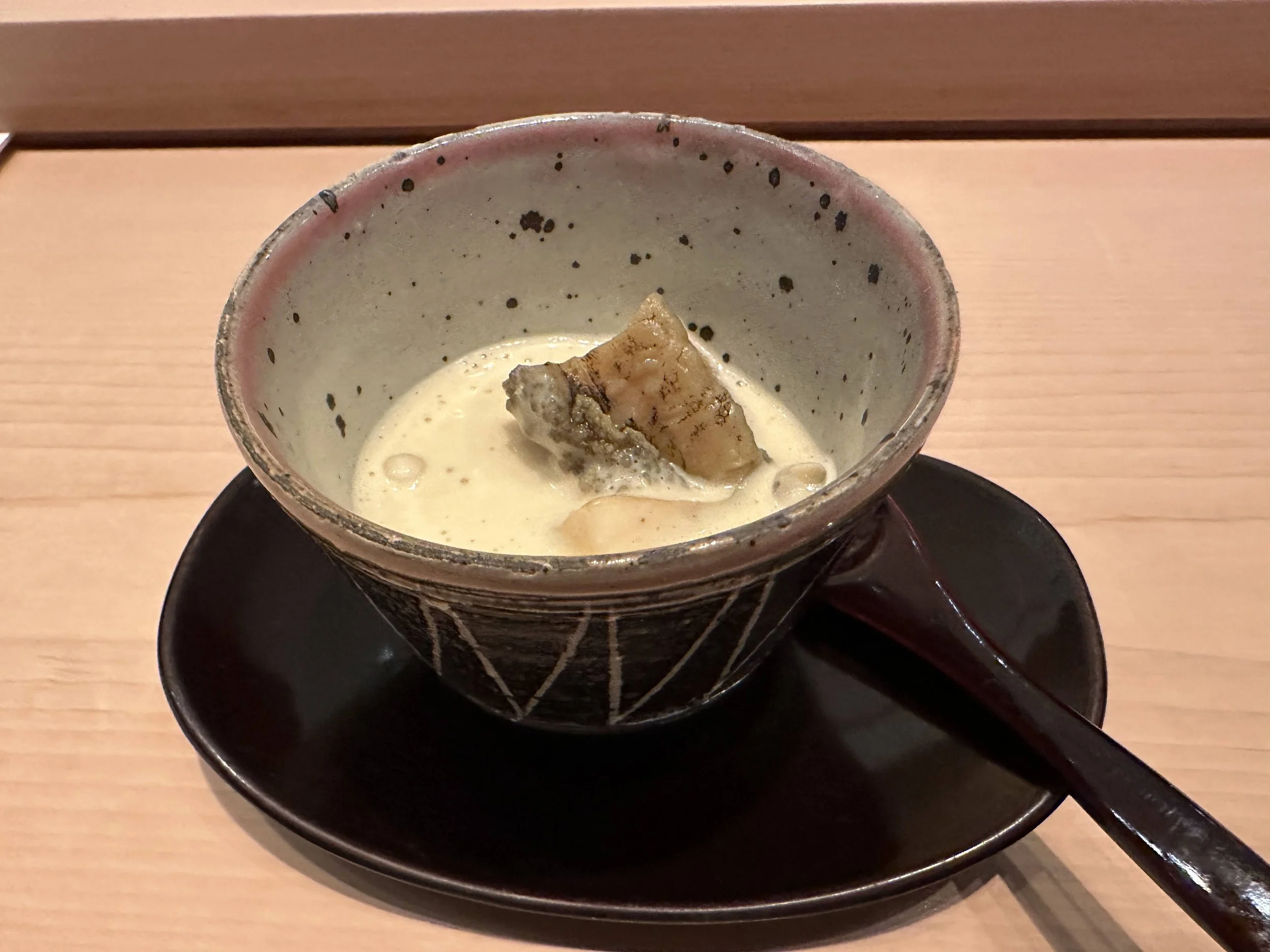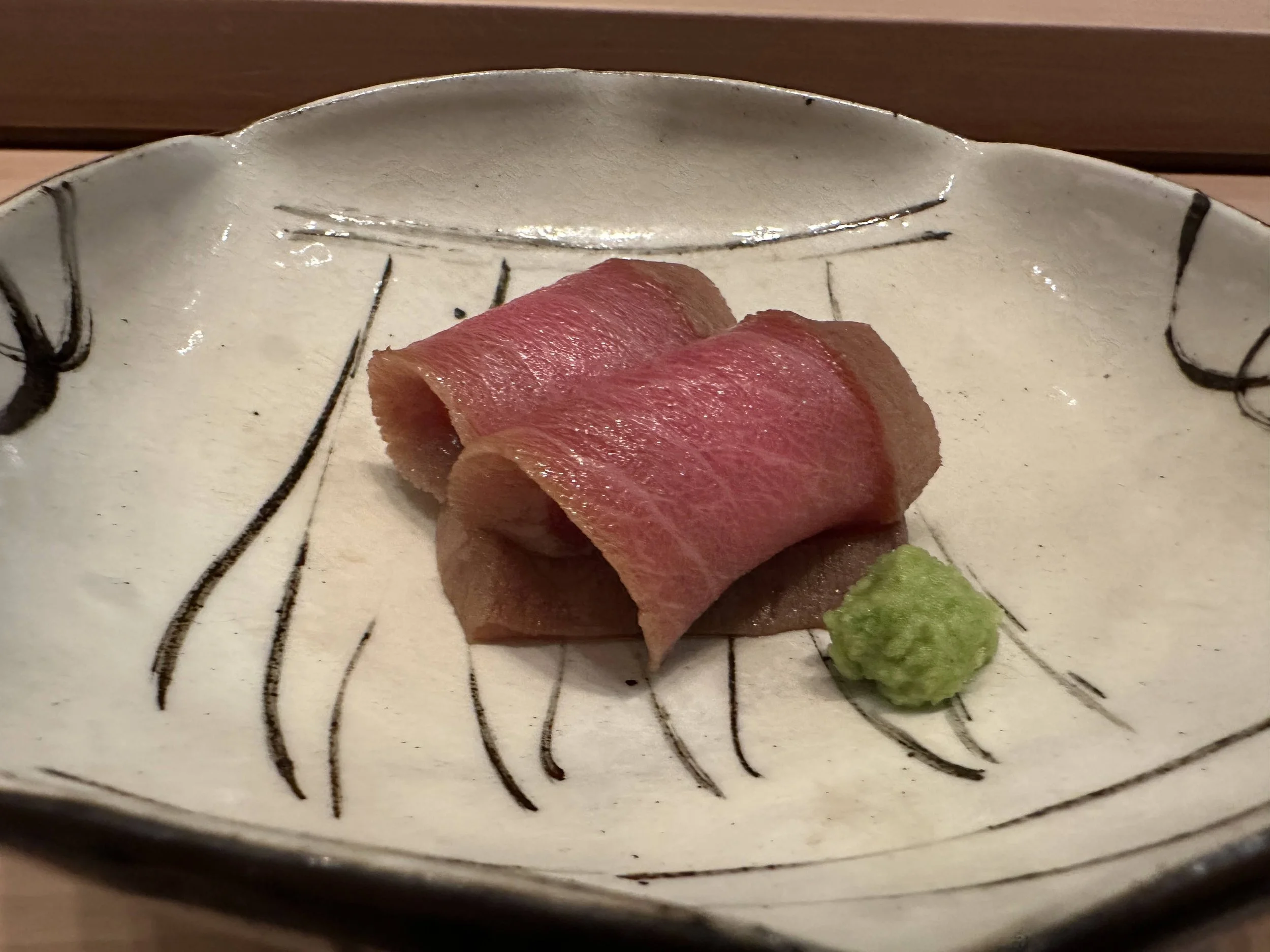 I can’t speak about the Hokkaido location because we’ve never been, but the Tokyo location is one of those intimate sushi restaurants with counter-only service, and I think there’s only like 8 seats at the bar. When we arrived, we noticed that there was a setting for two more people, so there’d be four people total this evening, and given that there were two chefs behind the counter, this was going to be a very personal sushi experience. Our chef, Chef Uno, was literally standing in front of us and preparing each dish: