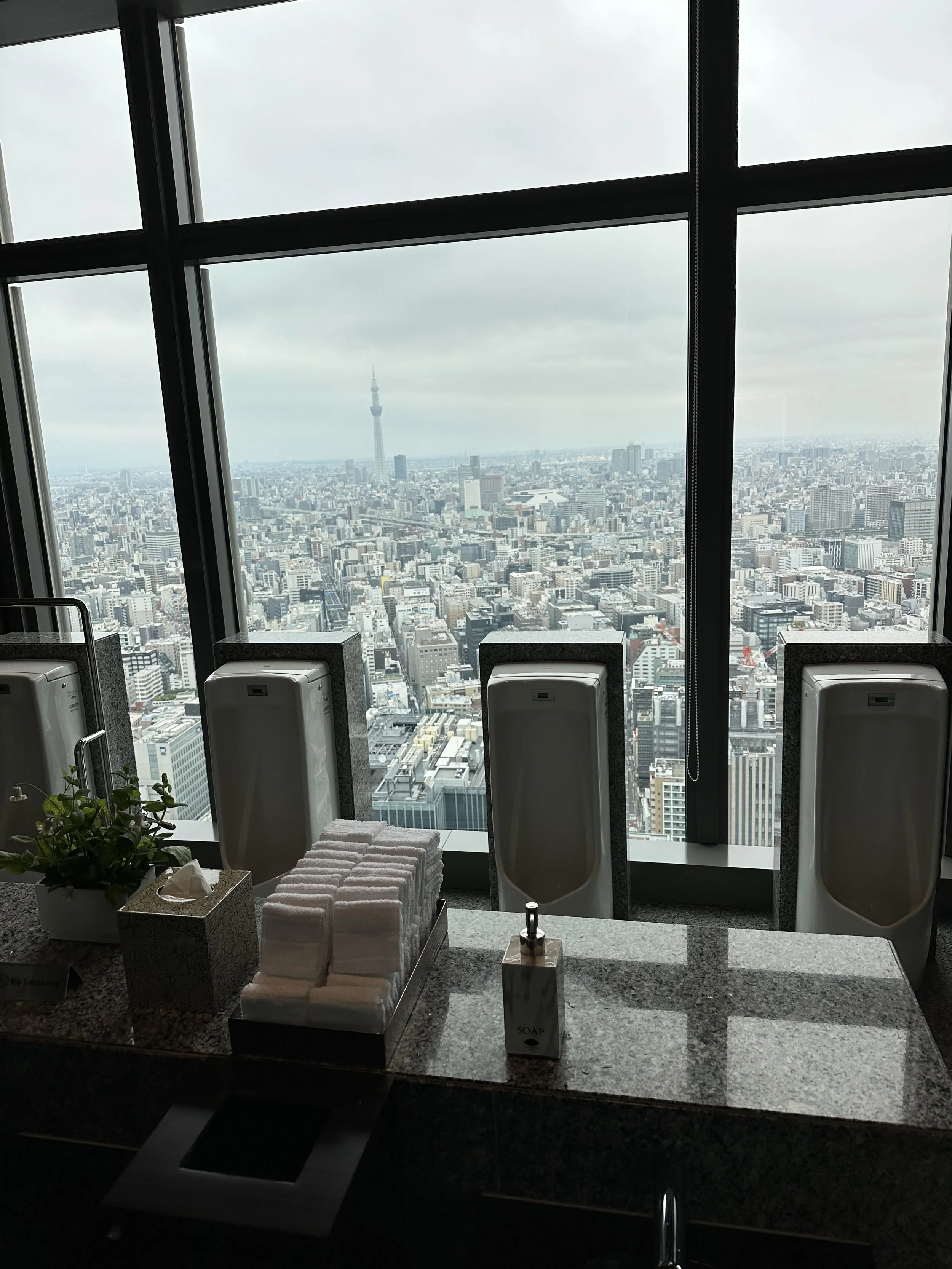 With the urinals being individually placed by the window, it sort of felt like I was peeing on the people down on the ground—it was a very odd perspective.