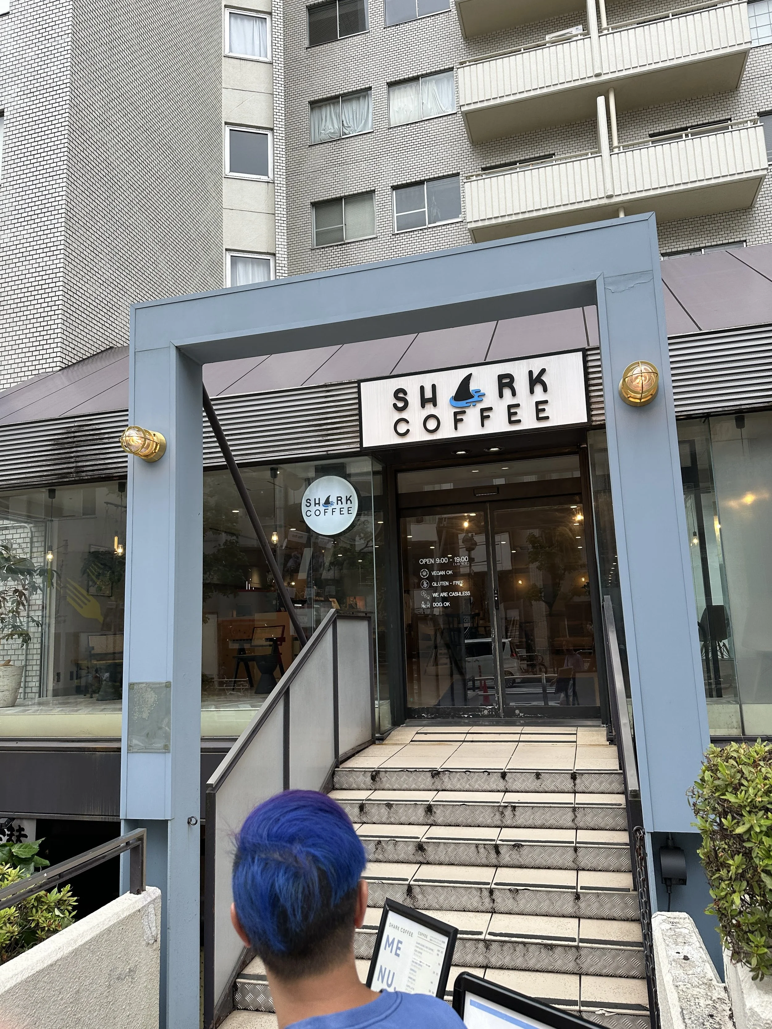 We didn’t realize that the food options there were vegan and gluten free, but since we were there for coffee, that didn’t really discourage us from trying it out. We ordered a couple of drinks and found a small table tucked in the corner, where the shark theme continued: