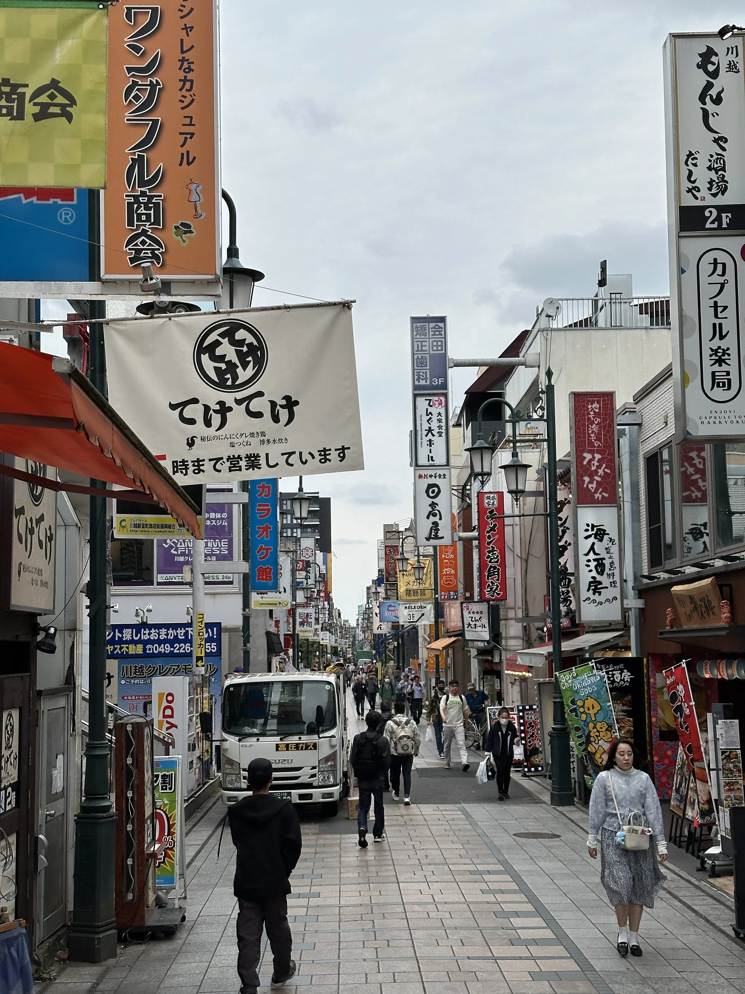 It took a while to get there from Tokyo station, mainly because we got on a slower train from Ikebukuro, but eventually we made it to Kawagoe. We immediately walked down the road that takes you to the famous warehouse district, which was also filled with various stores and signs: