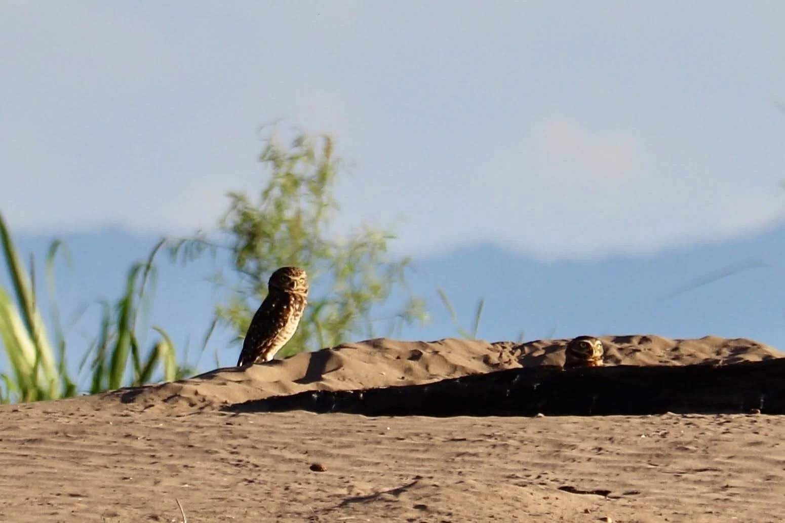 Dino and our group boarded the boat again, and drove off to find a beach to enjoy the sunset from. On the way there, Dino spotted these burrowing owls in the sand dunes: