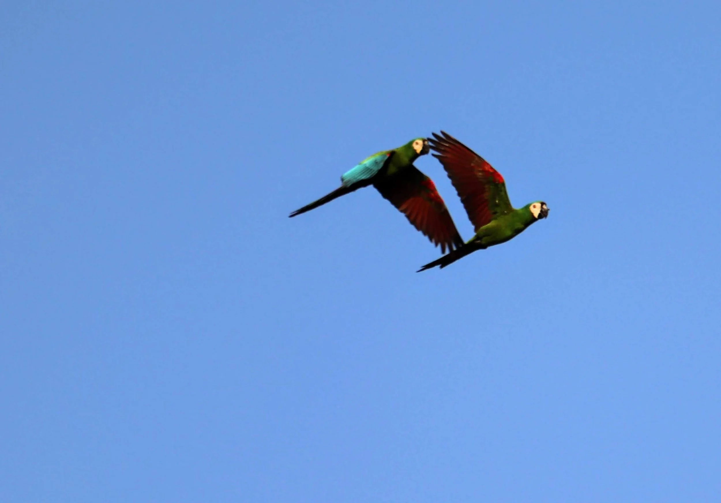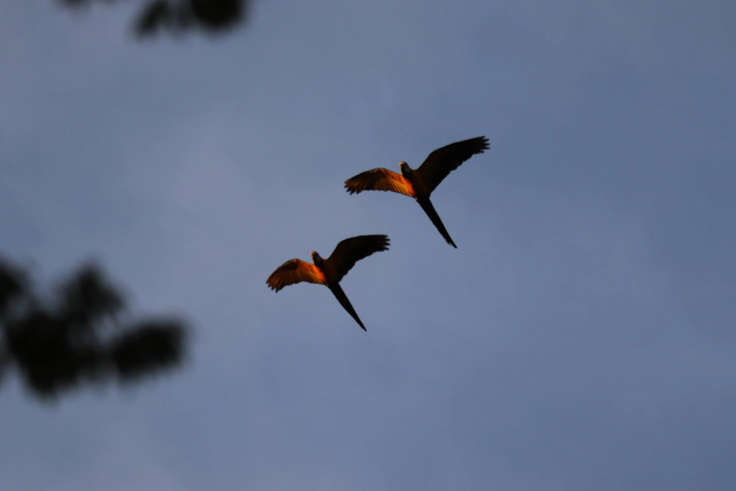 Miraculously, it burned away quickly while we listened to impatient birds squawking across the river. First came the little parrots: