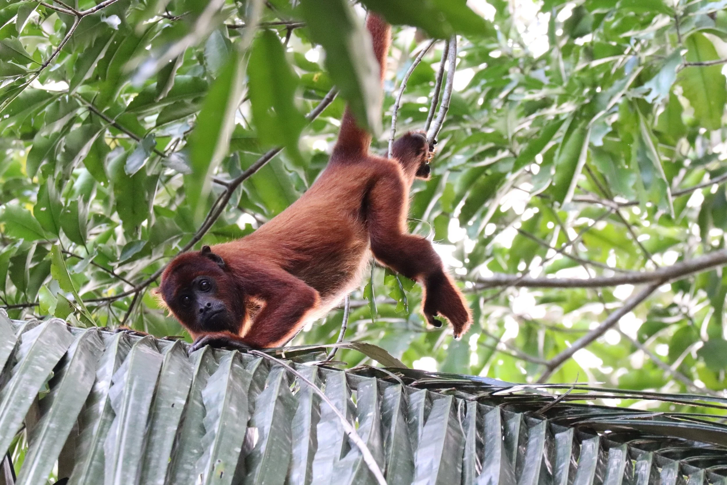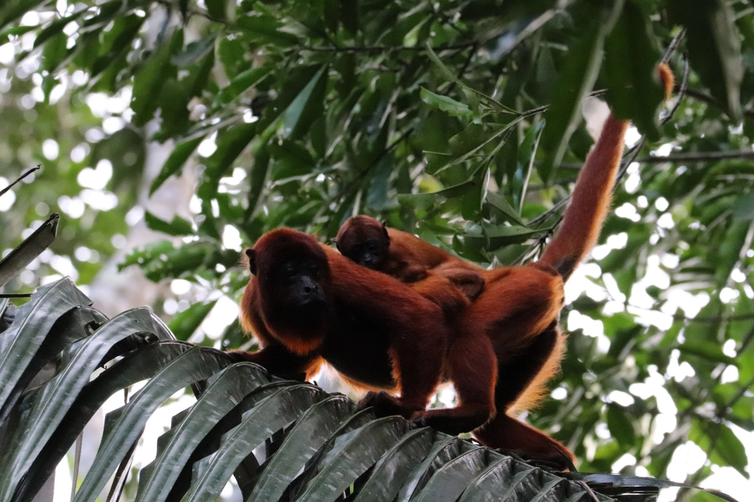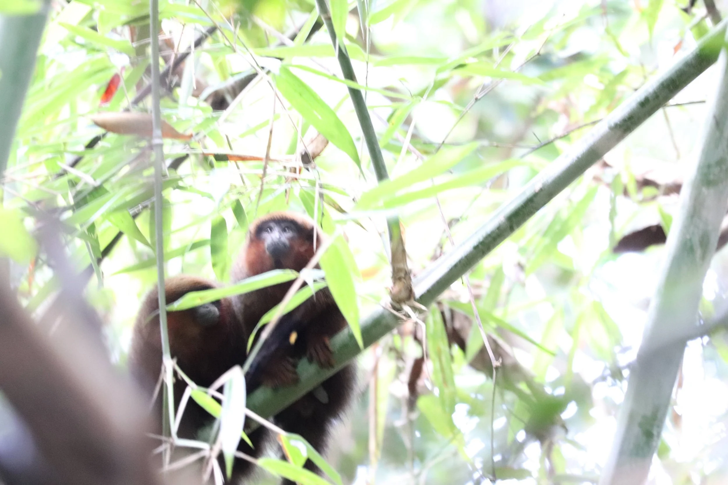 We got back in time for lunch, and then rested for a short bit before our next excursion, a walk through the bamboo forest. Right before we started our hike, Dino saw some howler monkeys in the trees as well, including a mother with her baby on her back: