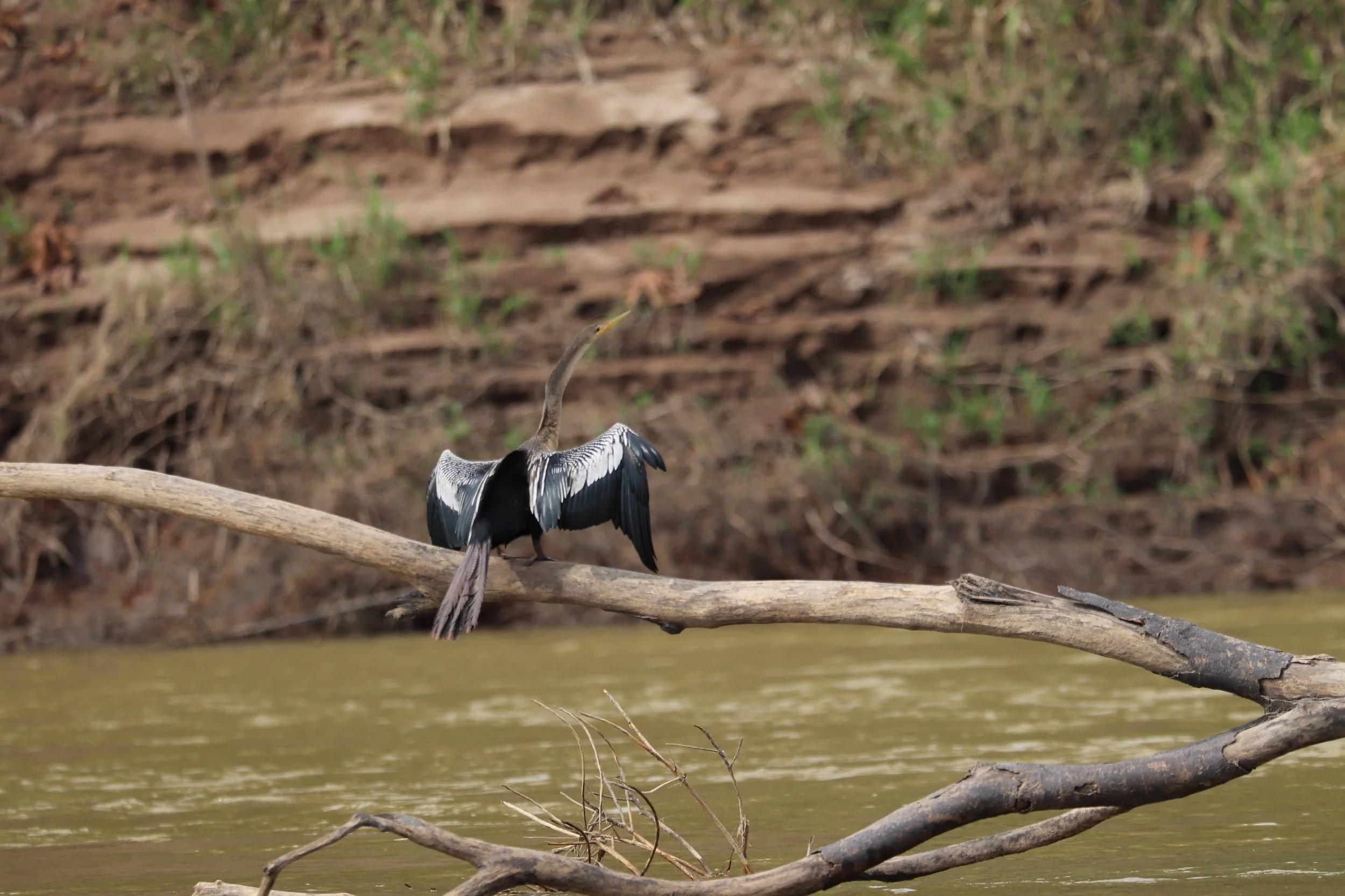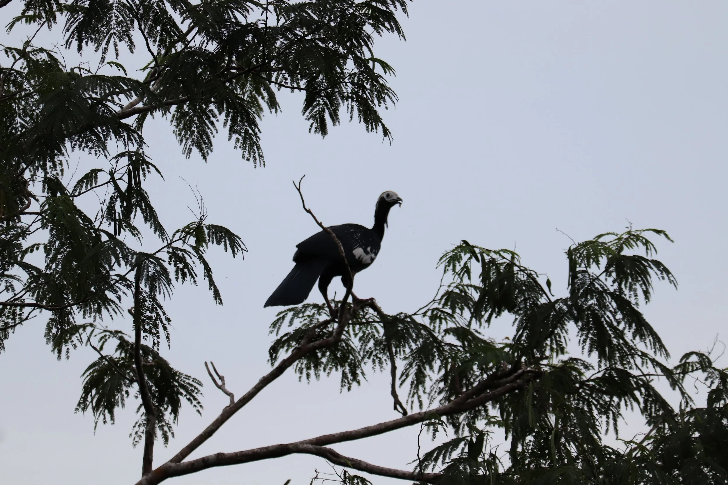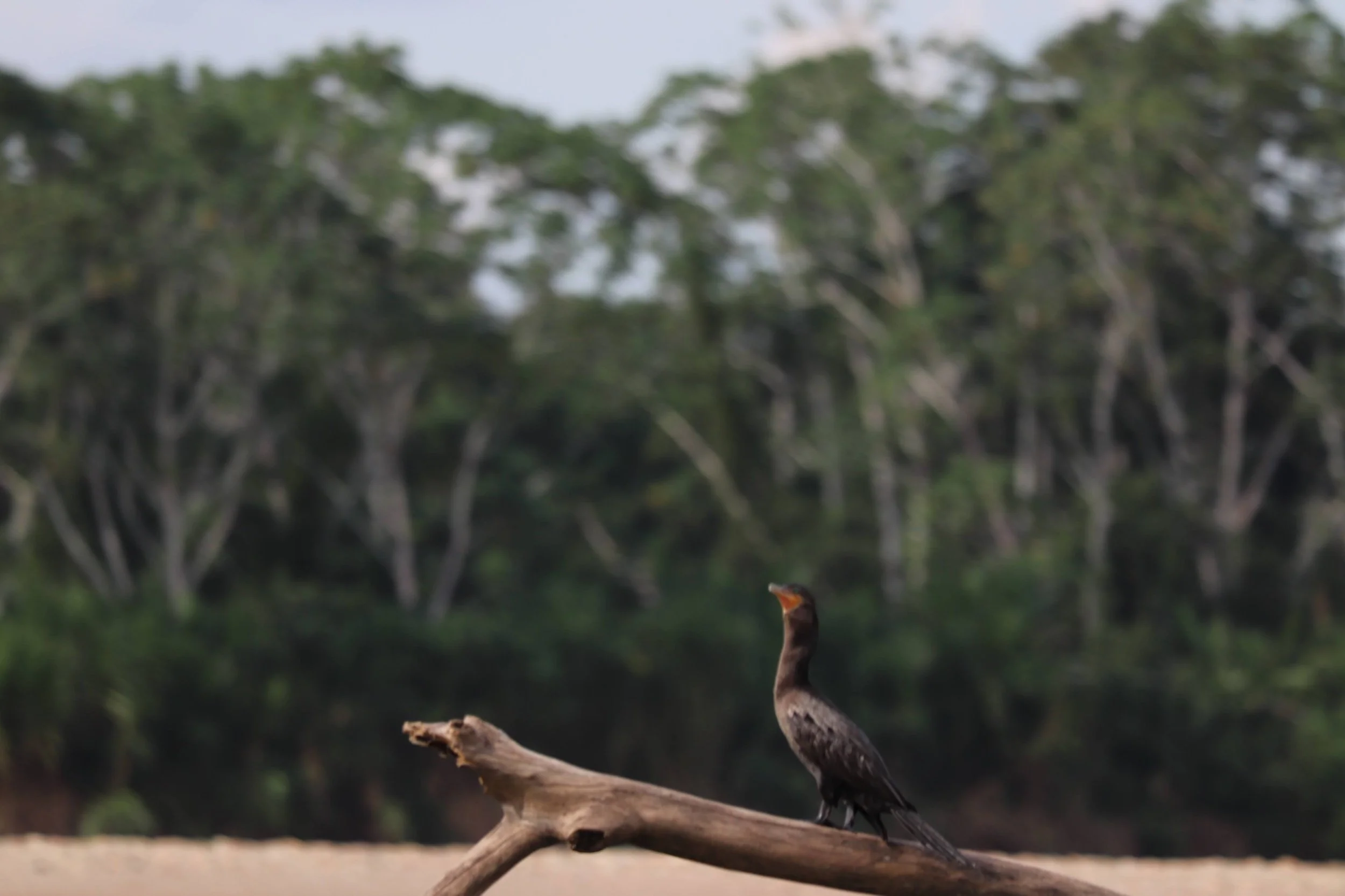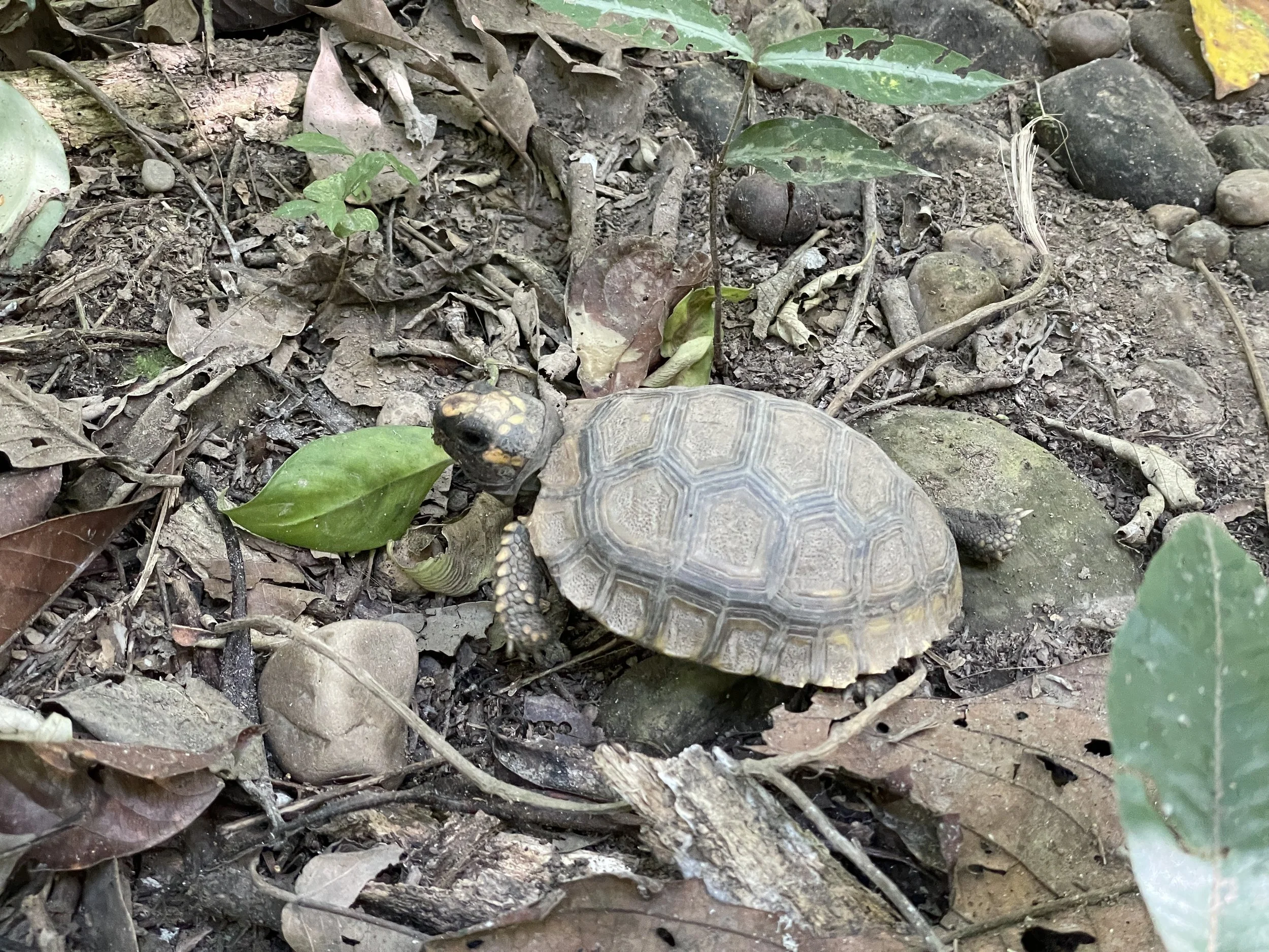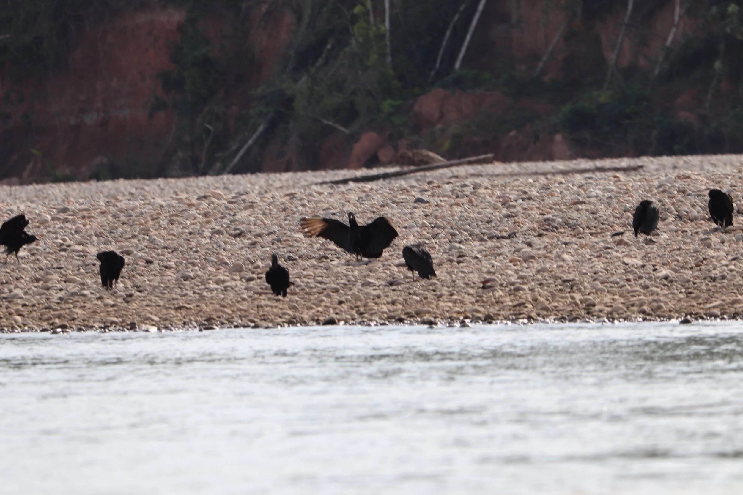 The hope here was that at dusk, jaguars and tapirs might come to the river to drink water, so we spent most of our time here. While waiting, we were able to see many different birds in the area, including the Oro Pendula, which is named as such because their feathers when spread out are yellow, like gold, and make the shape of a pendulum. We also saw Amazonian turkeys, which are very different from American wild turkeys—they’re much smaller, and can fly. Our guide also pointed out a few small birds, whose names I can’t remember right now, but they were pretty: