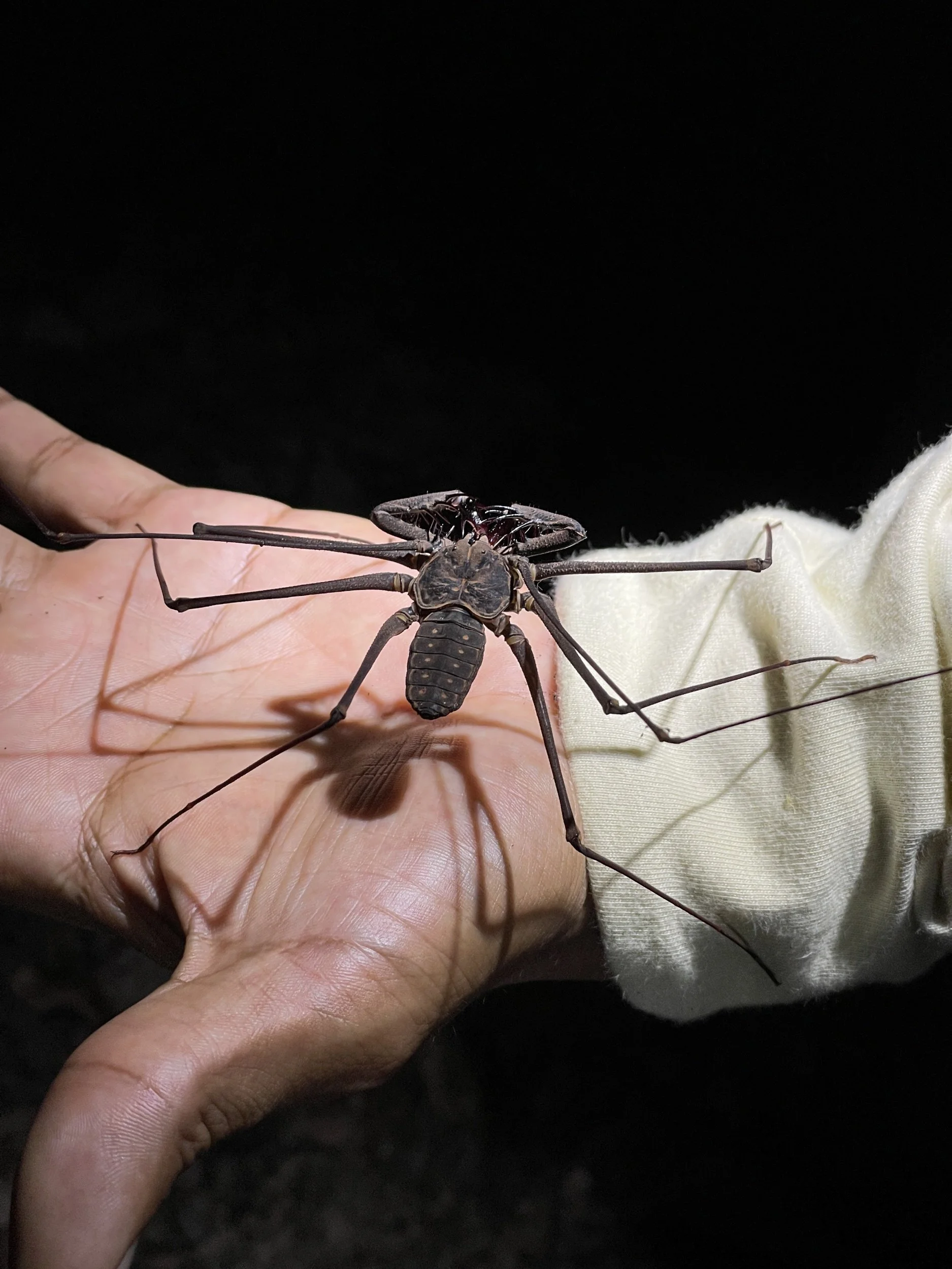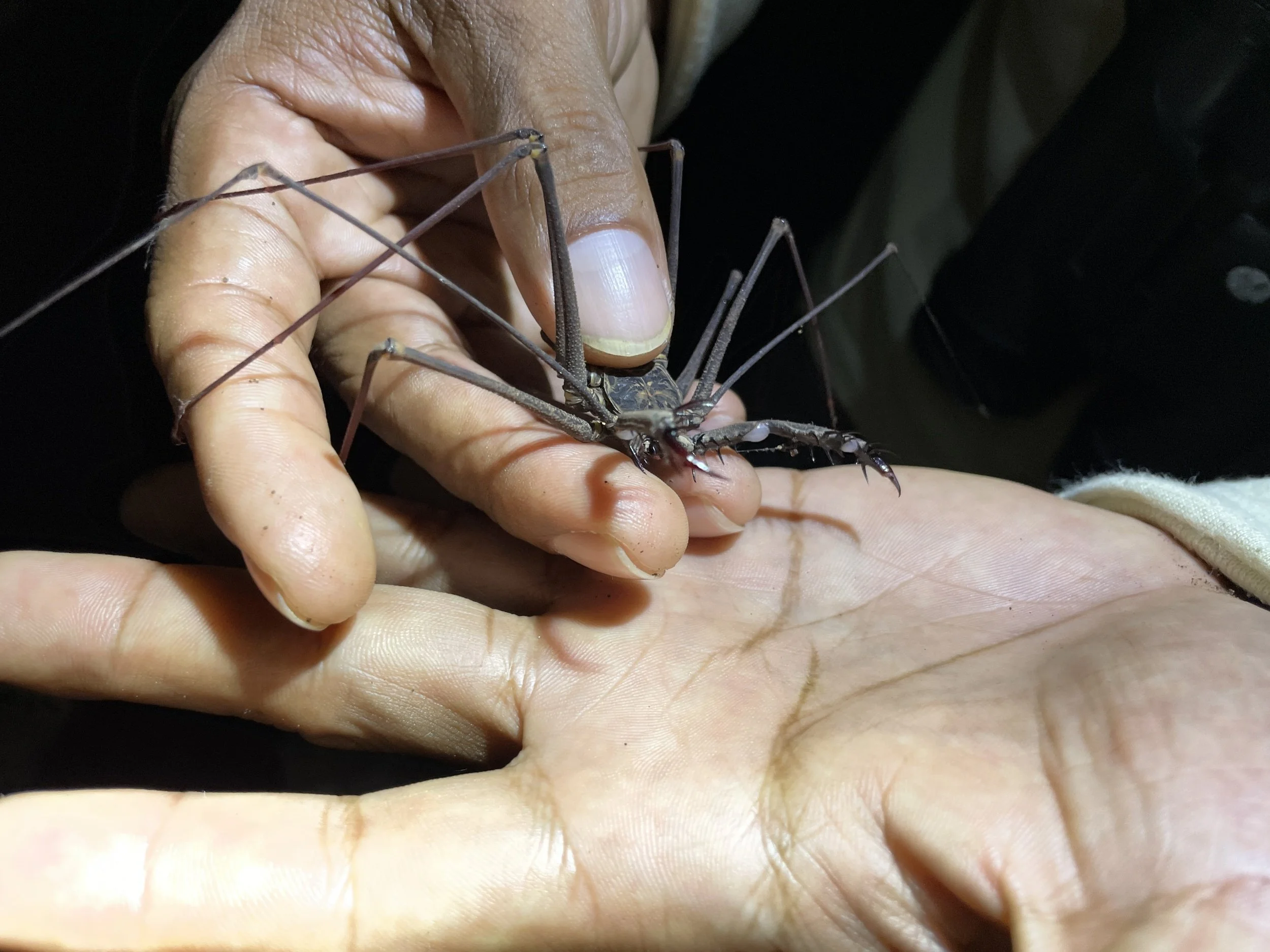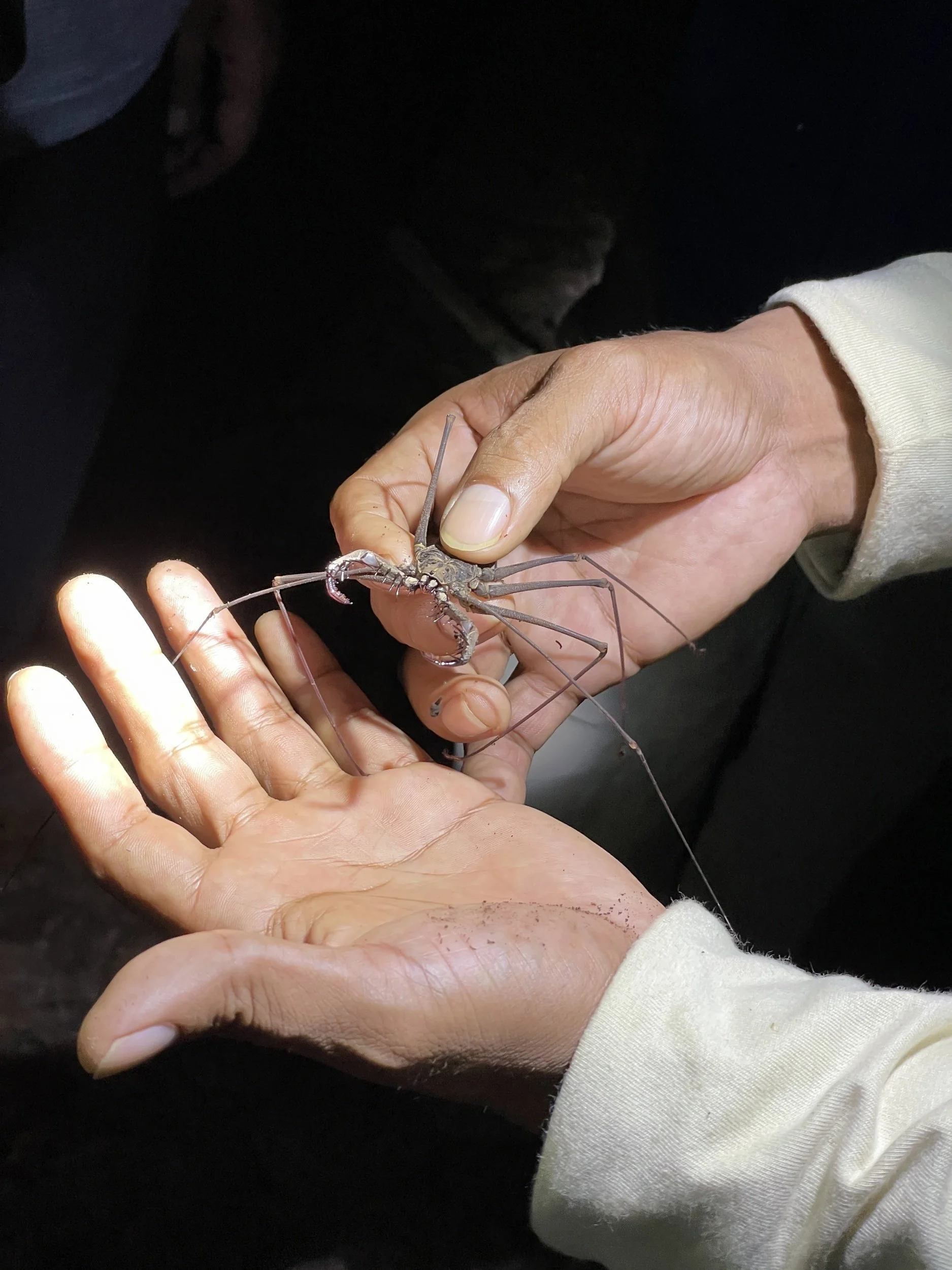 I can’t remember the name of this spider, but it was big and fast, and I kept my distance from it. Dino, on the other hand, decided to pick it up and put it on his face to show that not all scary looking creatures are dangerous. He asked if anyone wanted to volunteer to put it on their head, and unsurprisingly, no one said yes.