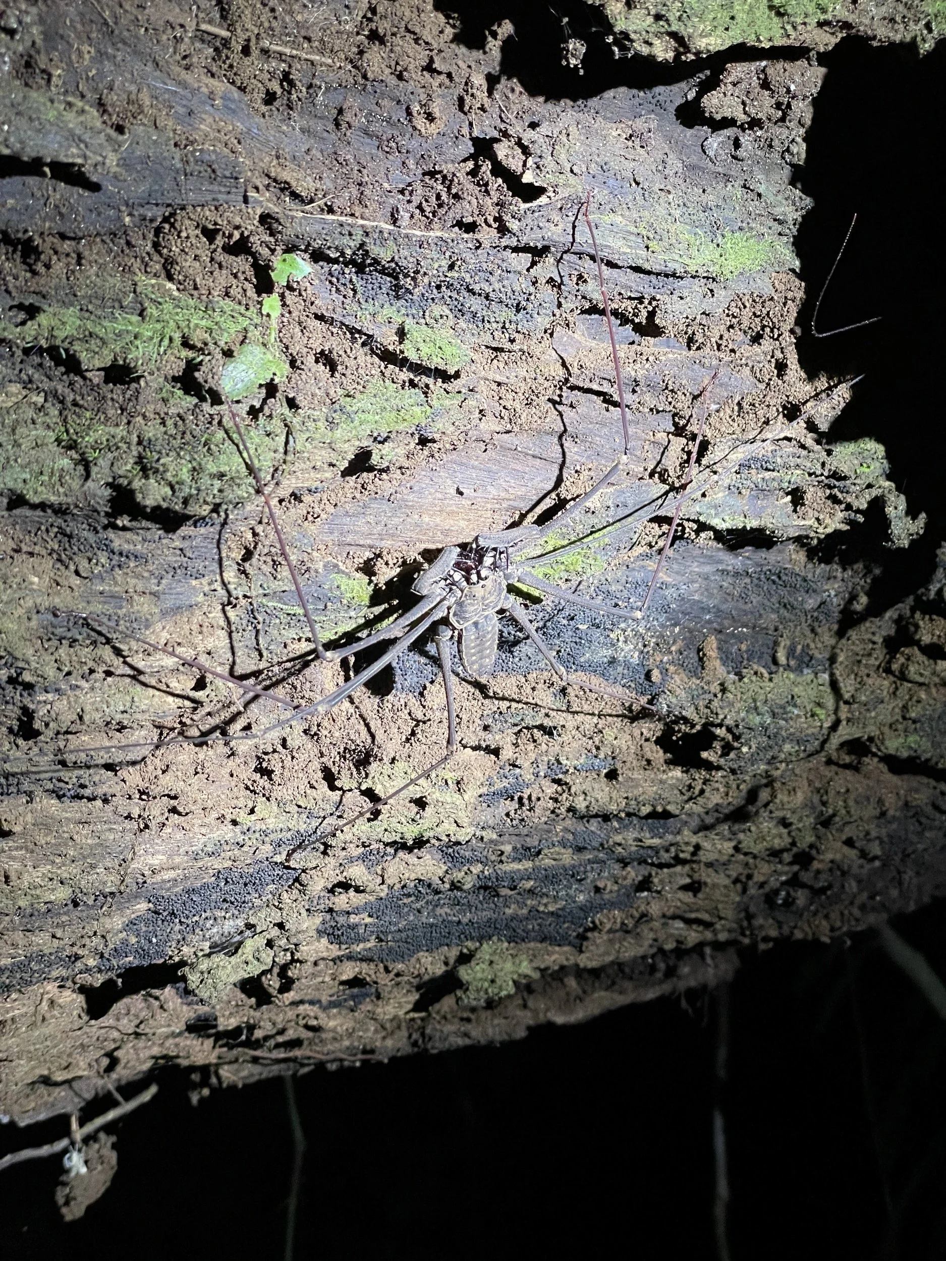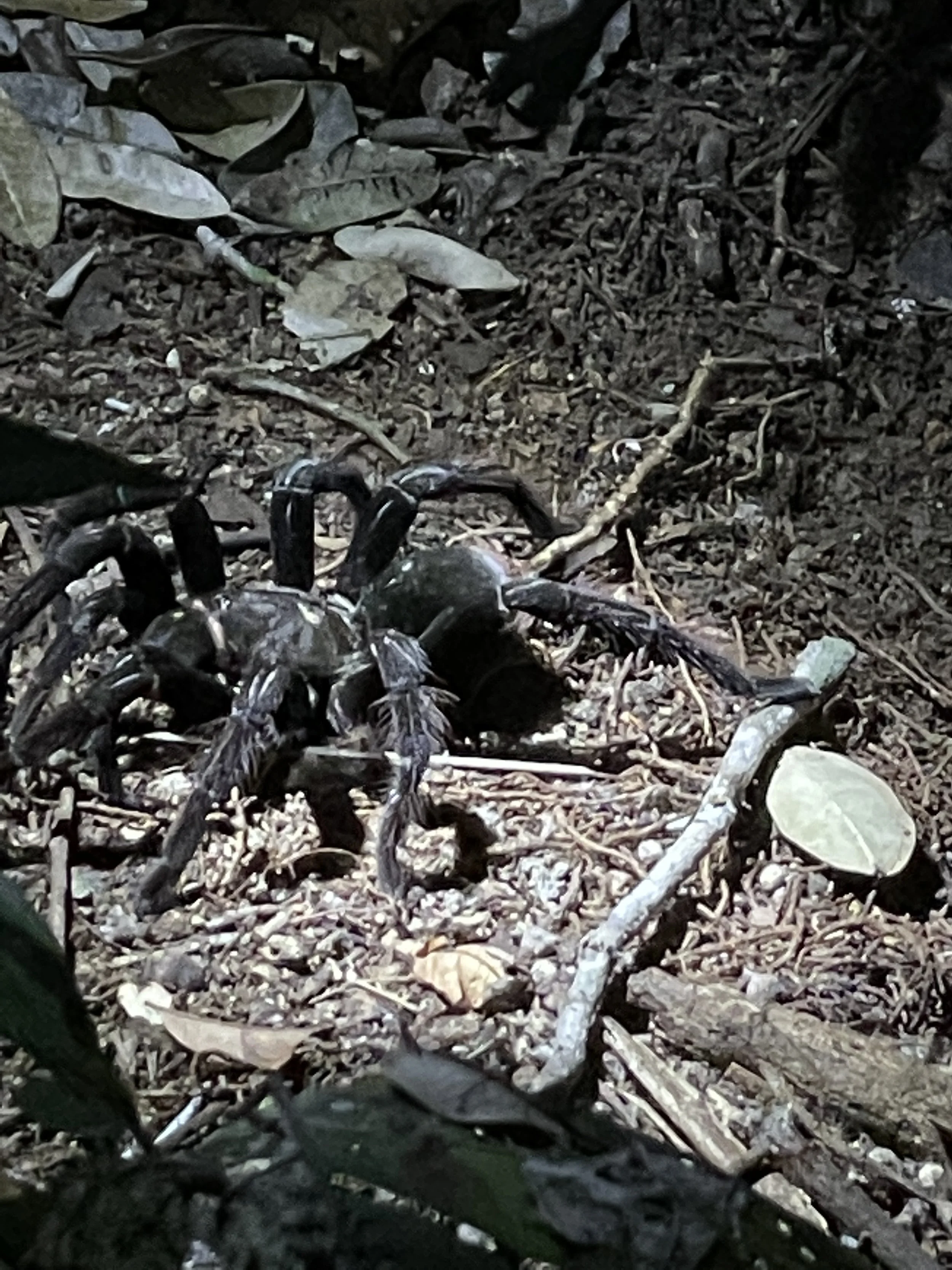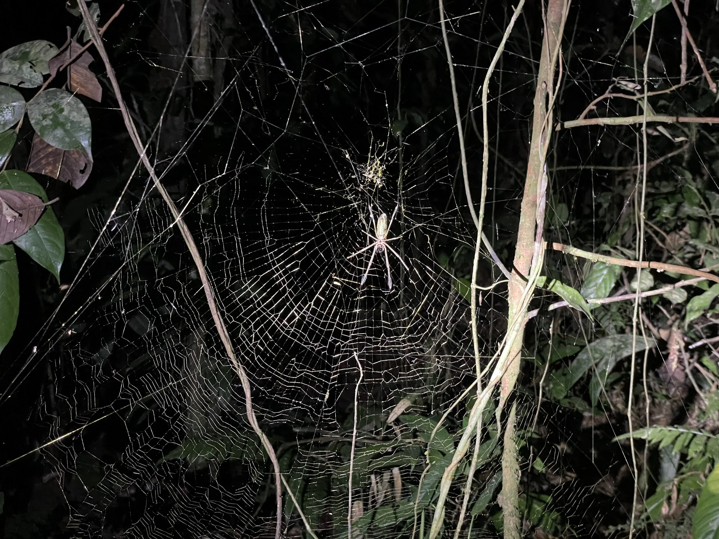 It was time to head back to the lodge for dinner and our last excursion, a short evening hike. I think this is called the night time insect walk, but in reality, it’s a spider hunt.