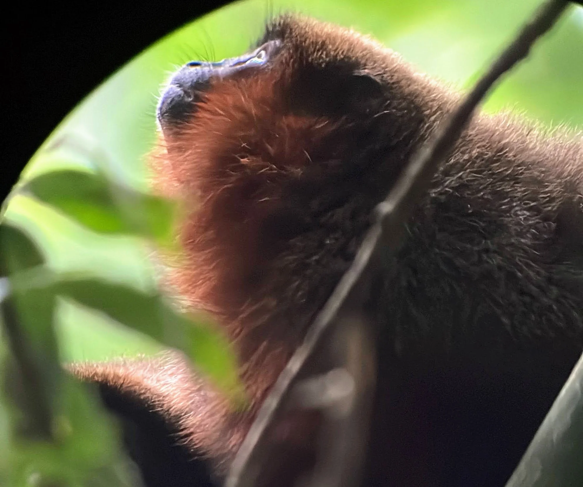 It was quite a distance away from us, and up in the tree canopy so the only good pictures we could get were on a phone, through the lens of a telescope. It’s amazing how well you can see the features of its face.